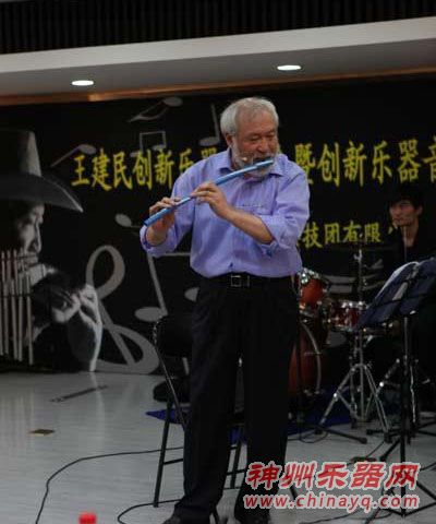 在,“王建民创新乐器品析会暨创新乐器音乐会”新闻发布会上,将填补我国民族乐队中低音弓弦乐器空白的、能够发出像大提琴那样优美低沉且明亮的“低音胡琴”,能够发出特殊音色和无痕滑音的“活塞笛”,这也是王建民用来挑战吉尼斯世界纪录的、用注射器制成的能够进行和声演奏的“双音排箫”,用呼啦圈软管制成的能够发出比笛子或箫更为低沉洪亮金属声音的“环埙”、“蓝笛”……悉数亮相。陶醉其中的王建民边说边演,用10种创新乐器接连演奏了15支曲目。整个大厅内掌声不断,一曲曲动人的旋律甚至让人不能相信如此美妙的声音竟然是这些长相颇有些“怪异”的乐器演奏出的。