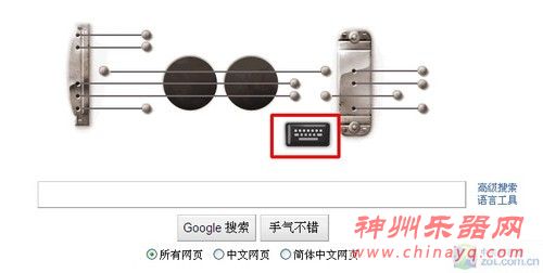 按照谷歌制作网页动画均使用Javascript的惯例,这个有声LOGO是以一把电吉他作为主题图案,用Javascript脚本来实现声音控制,网友拨动图片上的琴弦,即可以发出不同的音符声音。