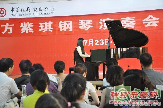 7月23日,由中国银行安庆分行音乐沙龙、安徽省青少年儿童音乐学会安庆分会等单位联合举办的旅法钢琴家方紫琪钢琴演奏会在中国银行安庆分行举行,活动吸引我市近百名音乐学子前去学习。方紫琪19岁保送中央音乐学院,期间多次在国际少年及青年钢琴比赛中获奖,同年以优异的成绩考入世界名校德国汉诺威音乐与戏剧学院钢琴系。