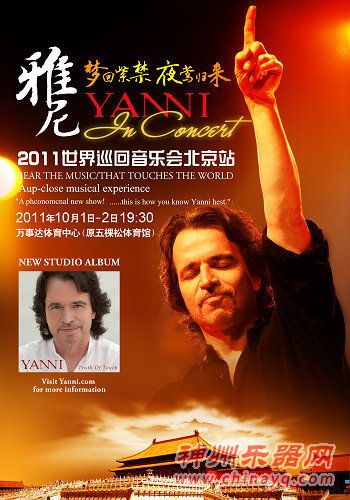2011年10月1日、2日,当代最著名音乐家之一、新世纪音乐鼻祖、曾在北京紫禁城创下了万人空巷奇迹的“希腊钢琴王子”——雅尼将在北京万事达中心开启时隔15年之后的中国首场音乐会,用音乐与大家重述15年的思念之情。