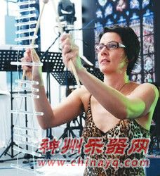 澳大利亚女乐手敲奏玻璃竖笛