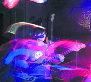 乐手在激情演奏 他们热爱摇滚音乐,他们是熟人眼中的“乖乖仔”,他们是一群热爱音乐的“老顽童”。 爱音乐、爱Beyond、爱夜晚的酒吧,在很多人眼里他们是另类的非主流;白天他们有自己的工作,夜晚他们属于乐队,热爱摇滚的他们是熟人眼中的“乖乖仔”;他们是“广寒兵工”—— 一个自称一无是处的本土民间音乐组织。这个由一群70后、80后组成的甚至入不敷出的业余乐队向记者讲述了他们对音乐的追求。 谈到今后的发展,首先是玩得开心,然后表演多了演出水平也会越来越好,我们的技术水平和对音乐的理解都能上个台阶。 我们最大的希望是有一天可以做自己的专辑。 ——阿尧 自我介绍:不以赚钱为目的的本地乐队 “有营业执照,唔靓仔,有钱,有才华……总之与好野挂钩既都有我地份。但系如果你都想一大班人一齐打BAND(注:乐队),我地随时欢迎你加入……”在中山有一群名为“广寒兵工”的热衷玩乐队的年轻人,这是他们的自我简介。 成立于去年5月份的“广寒兵工”由几支业余乐队打破隔阂后组成,后来陆续又有一些乐手加入,发展到如今已经成为拥有近20名“玩家”,活跃在多个知名酒吧,深受泡吧一族喜爱的“最强音”。 这一群70后、80后的业余音乐人都有自己的工作,他们中有工程师、工人、公务员,还有做生意的老板,玩乐队并不能给他们增加收入,演出收入甚至只能勉强维持组织的日常运作。用组织者贝斯手小强的话说,他们都是“老顽童”,就连“广寒兵工”的名称也是来自他们儿时共同的回忆——曾经在石岐相当有名的广寒冰工制冰厂,而玩音乐是他们一生的追求。 记者是在一次为日本地震募捐的赈灾义演上认识了这群满怀音乐梦想充满激情的年轻人,那一次的义演吸引了10多个国家的国际友人,而他们的表演也受到了一致的赞誉。 贝斯手兼键盘手阿尧说,他觉得做这样的善事很有意义,而他们也曾与青年志愿者组织有多次合作,还到过劳教所去表演。 讲述: 一天练七八个钟弹到手脱皮 阿尧第一次接触乐队是1997年在广州读大学的时候,当时班上有一位玩乐队的同学知道阿尧学过5年的小提琴有一定音乐基础,就带他去看学校乐队的表演,渐渐地阿尧迷上了乐队并成为其中的一员。“刚开始是做贝斯手,第一次公开表演很紧张,不过完成表演后有一种难以言表的满足感,小时候表演小提琴从来没这种感觉。”阿尧说,乐队需要几个人之间的配合,那种默契是一个人表演难以体会到的。 阿尧说,有时为了掌握某项技术或者练熟一段曲子,经常一练就是好几个小时,“试过最多的一天练习七八个小时,手弹脱皮是常有的事情,休息一段时间接着练。” 和“广寒兵工”的其他很多成员一样,阿尧本身是一名做制冷的工程师,每周2到3次的演出或排练让他很少有时间陪家人,“不过我的父母都挺支持我,我父亲也很喜欢音乐,还会几种乐器,他知道一个热爱音乐的人对音乐的感受。”阿尧说,在很多外人看来,穿着稍显另类的他们有些非主流,但实际上大家在家人和朋友眼中都是“乖乖仔”。