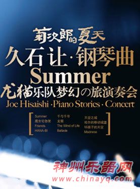 9月24日晚,“菊次郎的夏天——久石让钢琴曲龙猫乐队梦幻之旅演奏会”将在杭州剧院精彩上演。这是北京天利时代国际演出策划有限公司继成功出品“千与千寻——久石让宫崎骏动漫视听大型交响音乐会”之后推出的又一台让许多久石让的乐迷期盼已久的经典音乐会。 这台音乐会已于2011年4月28日、6月11日、7月29日、7月30日在北京音乐厅及上海音乐厅举行了首轮演出,每次演出门票都提前售罄,当晚的北京音乐厅和上海音乐厅座无虚席。担任此次音乐会钢琴独奏的是青年钢琴家谭小棠,他曾荣获2004年日本国际钢琴比赛冠军。谭小棠每年定期应邀在日本举办音乐会,备受日本乐迷喜爱。日本媒体评论:“他有着晶莹剔透的钢琴音色,高超精湛的演奏技艺,细腻丰富的情感表达”。 音乐会上,《Summer》的欢快热情、《千与千寻》主题音乐《One Summer's Day》的纯净与真挚、钢琴与弦乐的经典版本《天空之城》的空灵与淡淡的伤感在谭小棠的十指间表现得淋漓尽致。在演奏钢琴独奏曲《HANA-BI》(花火)时,钢琴发出的宏亮饱满的音响震撼了所有在场的观众,大家都被他精彩、富有激情和魅力的演奏所倾倒。而龙猫乐队演奏的《魔女宅急便》中的《海の见える街》(又名《更替的四季》)很有感染力,那久违的童真打动了现场观众们的心灵。乐队与谭小棠的合奏相当默契,他们一起演奏的乐曲情感和音色更加丰富多彩。 久石让的音乐,有一种能勾起人们内心深处那份纯真的力量,尤其是他的钢琴曲,深受人们的喜爱。久石让不但是宫崎骏的音乐代言人,更与北野武组成黄金搭档,并创作了一系列为电影而作的经典钢琴曲:《菊次郎的夏天》、《那年夏天,宁静的海》、《坏孩子的天空》、《花火》等佳作。 此次“菊次郎的夏天——久石让钢琴曲龙猫乐队梦幻之旅演奏会”,主办方从久石让的《永久典藏精选集/ENCORE》、《月光星愿/ETUDE》和久石让在武道馆的演出曲目中精选了最受乐迷喜爱的钢琴曲,这些钢琴曲也是久石让本人最为喜爱并在他自己的演奏会上经常演奏的作品。 第一部分,纯粹的钢琴独奏曲,有电影《千与千寻》主题曲《ONE SUMMER'S DAY》、电影《花火》里的《HANA-BI》、电影《BROTHER》选曲《BALLADE》;《THE WIND OF LIFE》以及《FRIENDS》和《SUMMER》。 第二部分,久石让专为钢琴和弦乐队创作的《Bolero》和《 Madness》。 第三部分,钢琴与弦乐队版的经典动漫音乐《天空之城》、《哈尔的移动城堡》、《龙猫》、《魔女宅急便》,以及北野武的电影《坏孩子的天空》等。此外,钢琴和小提琴演奏的《魔女宅急便》主题音乐和钢琴与大提琴演奏的《龙猫》也赢得了观众的热烈掌声,成为了音乐会上一道亮丽的风景。