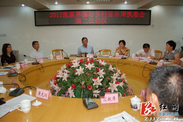 2011张家界国际乡村音乐周执委会第二次会议 2011张家界国际乡村音乐周将于9月10日至16日在张家界举行。今天上午,2011张家界国际乡村音乐周执委会第二次会议召开,就相关事宜进行专题研究部署。张家界市委副书记、市长赵小明,市委常委、市旅工委常务副主任陈初毅,副市长刘曙华,市副厅级干部莫辉华以及执委会成员单位出席会议。 会议通报了2011张家界国际乡村音乐周筹备工作情况、参演团队规模、日程安排和志愿者招募等内容。宣读了由中共张家界市委办公室、张家界市人民政府办公室印发的《2011张家界国际乡村音乐周执委会工作方案》的通知,明确了组织机构和工作职责。 赵小明要求,各执委会成员单位要统一思想,高度认识做好2011张家界国际乡村音乐周工作的重要意义,进一步明确责任,认真落实“两办”文件精神,统一协调,相互配合,尤其要把安保和维稳放在首要位置,确保“音乐周”期间安全稳定。张家界人民要用大气、正气、朝气的姿容和开放的姿态迎接海内外宾客,努力把张家界打造成国际的乡村音乐品牌和乡村音乐圣地。 2011张家界国际乡村音乐周为期6天,以“世界的自然遗产,我们的乡村音乐”为主题。本次活动邀请了来自27个国家和地区的31支乐队以及国内8支民族乐队共计580人参加。届时,一场跨越国界、超越种族的世界乡村音乐盛典狂欢将在张家界的奇山异水间再次奏响。目前,“音乐周”的各项筹备工作正有序进行。