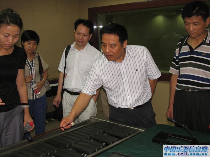 参观活动中,北京乐器研究所所长陈晋武首先向院领导汇报了研究所主要工作的开展情况,介绍乐器研究所近年来主要围绕数码钢琴音源项目开展的科研开发工作,并向参观团展示了前期的基础性工作——自动演奏钢琴系统。随后,陈所长详细讲解了目前研究所的科研工作开展情况。他说:“我所借助北京市科委的科研立项政策,每年计划投入100万元进行科研活动,包括基础实验室的建设、仪器设备更新改造等工作,对提高研究所的科研基础和实验条件起到了至关重要的作用。目前,研究所自主开发的‘数码钢琴音源技术’已经形成科研特色。”陈所长在向参观团详细介绍该技术项目发展情况时提到,“我所的数码钢琴音源技术的工作主要包括以下几个方面:一是,电钢琴。如今世界范围内应用比较广,而我国研发的时间较晚,因此上升空间很大,我所比较具有研究的优势。二是,与星海公司集团对接的静音钢琴项目,按计划将于明年3、4月间在德国乐器展览会上推出成品。静音钢琴是在数码音源平台上完成的,这种钢琴的特点在于自己戴上耳机欣赏演奏而不会去影响其他人,在钢琴教学上也会起到很大的作用。因此,静音钢琴会有很大的市场前景。三是,电子鼓。我所主要研发电子鼓的控制核,产品预计于今年10月亮相。四是,数字马林巴项目。该产品同样在数码音源上完成,主要供各大院校进行教学使用。”陈所长明确表示,我所将继续在数码音源平台上进行系列研发。
