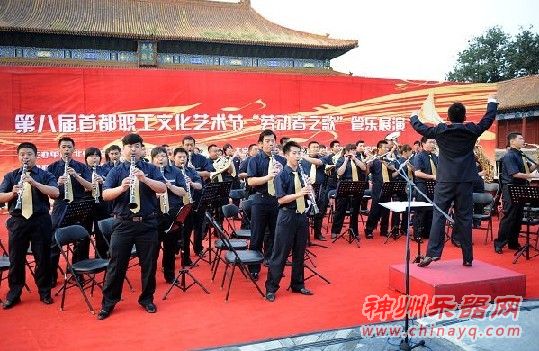 为活跃首都职工音乐艺术生活、促进首都管乐艺术发展,由北京市总工会、北京市委宣传部、首都文明办、北京市文化局、北京市国资委、北京市文联和北京市工商联等联合主办,由北京市劳动人民文化宫、北京音乐家协会、北京管乐协会、劳动午报社、中音在线网联合承办的第八届首都职工文化艺术节“劳动者之歌”管乐展演9月5日下午5点在太庙隆重开幕。