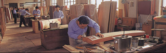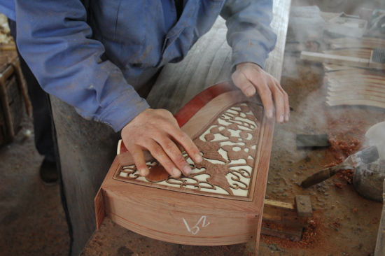 二胡 琵琶 古筝生产 装岳山 上海为我国民族乐器的重要产地之一,制作技艺可追溯到清代乾隆、嘉庆年间。上海的民族乐器制作技艺代表作品为古筝、二胡、琵琶等。民乐一厂对古筝的音质、工艺、装饰等进行全方位的改良和创新,古筝花色品种不断翻新,老红木扦雕筝(梅庄琴韵)、老红木镶嵌筝(蕉窗夜语)、红木竹刻筝(风摆翠竹)等都很受欢迎;近年来,随着各种工艺的大量应用,琵琶的款式也在不断翻新,其中红木牡丹琴首琵琶在各等级琵琶中使用较多。 上世纪二三十年代,民族音乐家刘天华对流行于民间的二胡形制加以改进,固定其形制,为二胡走向专业化道路奠定了基础。面对自然资源的匮乏,2001年民乐一厂打破传统工艺的束缚,以猫皮、狗皮、鱼皮代替蛇皮制作二胡、京胡等拉弦乐器。这些环保乐器受气候影响小,不易开裂,音域适应范围比较宽的特点。现在将电脑镭射技术、雕刻等工艺应用于二胡,二胡的款式、样式不断丰富。