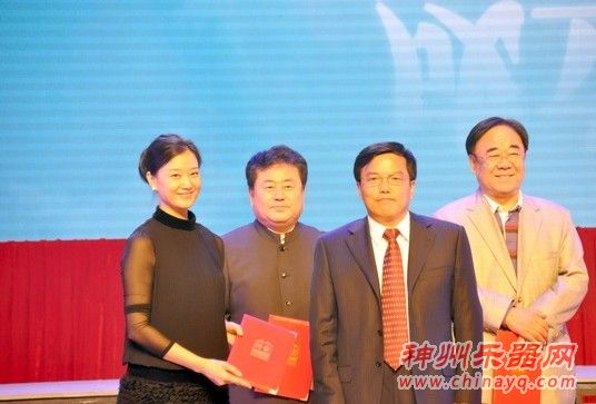 苏志武校长(左三)为金铁霖(右一)、徐沛东(左二)、宋祖英(左一)颁发聘书