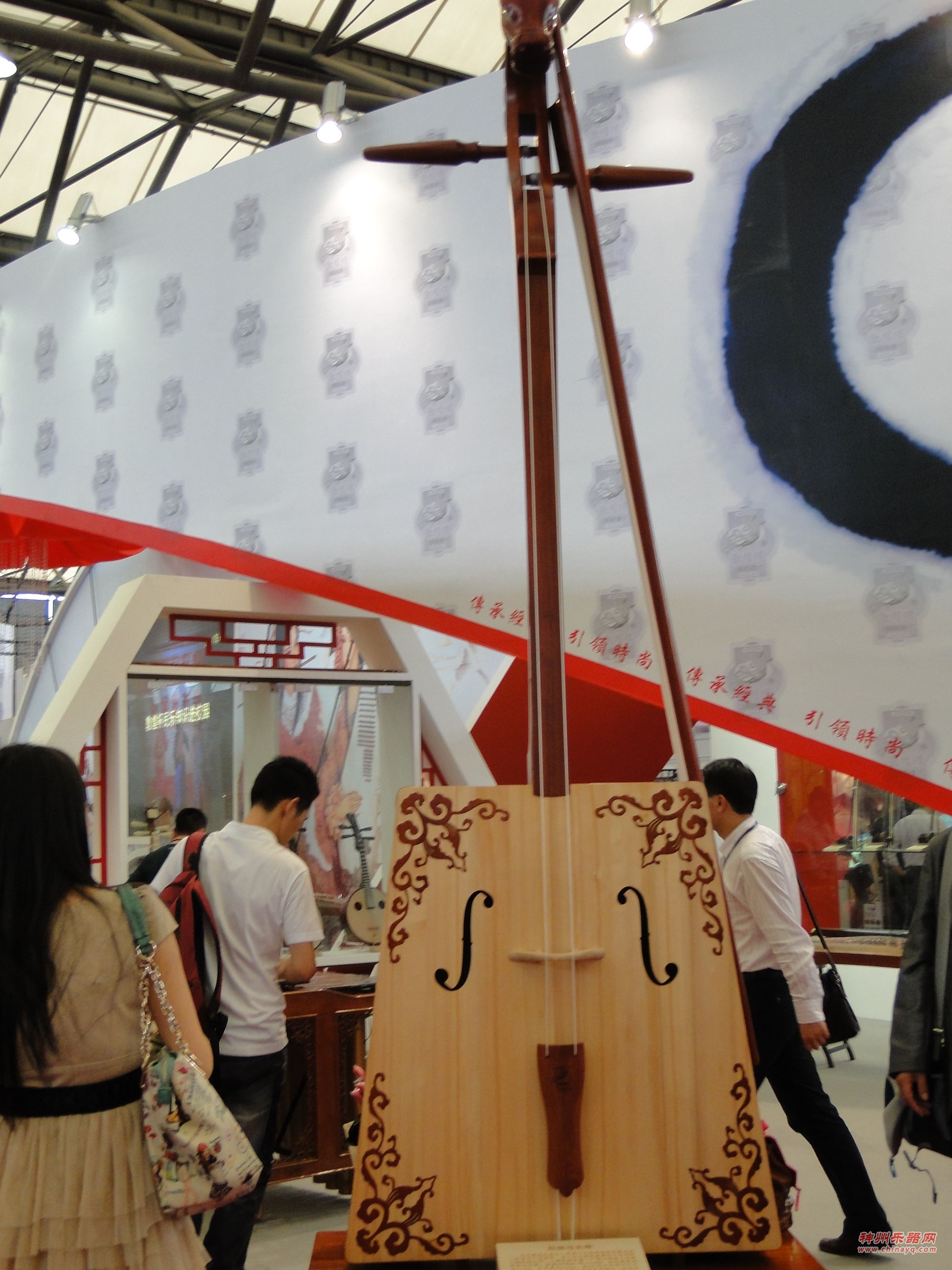 中国共产党建党90周年,也成为了上海民族乐器一厂的设计制作素材,一款特别为之设计制作的胡琴——“吉祥如意”也引来不少看客。厂方工作人员说,琴身的花窗上“党旗”、“天安门”、“90”标志性图案寄寓祝福。众多“特异”乐器不仅增加了展会看点,也丰富了展会内涵。