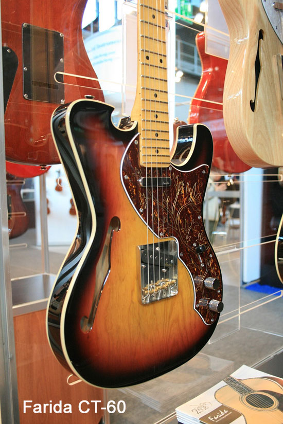 2009年4月份刚在德国法兰克福展所举办的乐器展中,国际知名吉他品牌 Farida 法丽达也参加了这次的盛会,会中展示出几款法丽达最新设计的原型款式,而其中有二款较具美式摇滚风格及特色的,那就是 CT-60 与 CT-60 Bigsby。