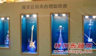 在演出前,珍贵的水晶乐器被放了订做的展示柜子里供市民参观。面对极为罕见的水晶乐器,香港市民争先合影留念。水晶的晶莹剔透让人着迷、惊叹,香港的主办方专门为水晶乐坊名贵的水晶乐器召开了时尚展示会。乐团全部水晶乐器均是由享誉国际的资深乐器制作大师耗巨资以传统扎实的纯手工工艺打造,为乐团量身定制的极为罕见的“水晶艺术品”。其中水晶电吉他,全国只做了一把,水晶琵琶限量两把,水晶电小提琴限量两把,水晶二胡限量三把,均被国家乐团和华筝国际列为限量收藏品。