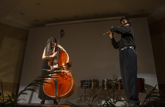 在这场探索艺术边沿的音乐会中,既有二胡演奏家孙逸雯细腻模仿各种飞禽的啼叫,生动活泼的二胡独奏《空山鸟语》,笙演奏家苏博笙独奏《即兴曲》,也有琵琶与三弦相遇,琵琶演奏家龚瑛老师及三弦演奏者胡金汇合奏的《江南春》,《乐之乐-吹乐与击乐的游戏》中,打击乐演奏家袁晓彤和唢呐演奏家陈伟宏用一种全新的方式演绎了春天万物苏醒的灵动,更有中西合璧的《枫与枫桥-笛子与低音提琴的对话》,笛子演奏家俞飞与低音提琴演奏家张梦娇将东西方两种古典乐器的艺术张力都释放到了极致,呈现出极具艺术震撼力的表现效果……