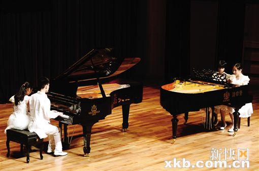 神州乐器网讯 两架钢琴,八只孩子的手,指尖纷飞跳跃间合奏出一曲《祝酒歌》。谢幕,台下掌声雷动,一束光打在四个少年的身上,这时你才发现,他们的眼睛空无一物。昨晚的广州星海音乐厅,国内首个盲童八手联弹在此首秀。
