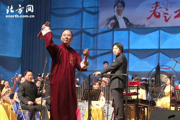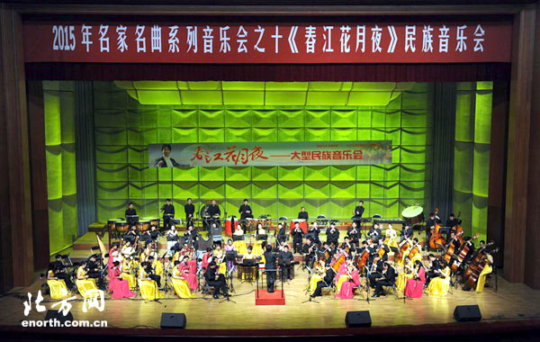 神州乐器网讯 6月21日晚,作为“天津市2015年名家经典惠民演出季”重头戏之一的《春江花月夜》大型民族音乐会在天津大礼堂成功上演。这台音乐会是由天津市文化广播影视局、天津北方演艺集团主办,天津歌舞剧院和天津民族管弦乐学会共同承办。