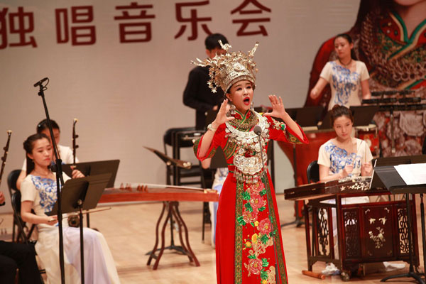 我们常说歌剧是一种表演艺术,演员在舞台上不止要唱,更要注重表演的痕迹。而今天,谭萌就为现场到来的观众朋友们带来了三段歌剧《洪湖赤卫队》选段,分别是《洪湖水浪打浪》、《小曲好唱口难开》、《没有眼泪,没有悲伤》。在这里,谭萌分别为我们演绎了韩英和小红的角色。为了更好的演绎歌剧中的小红一角,谭萌还专程学习了敲碟子,其对音乐的执着与热爱可见一斑。