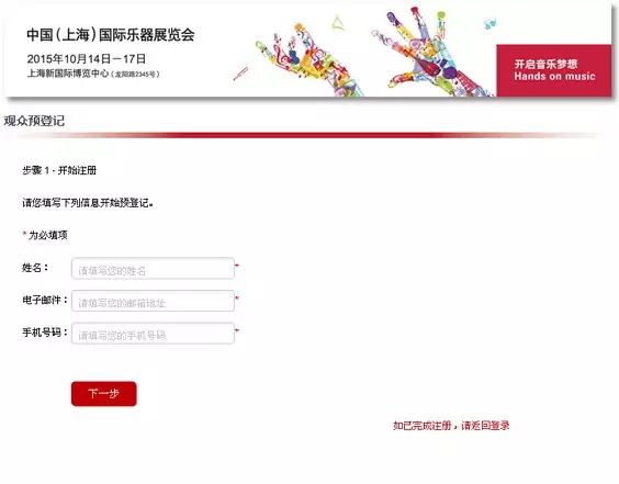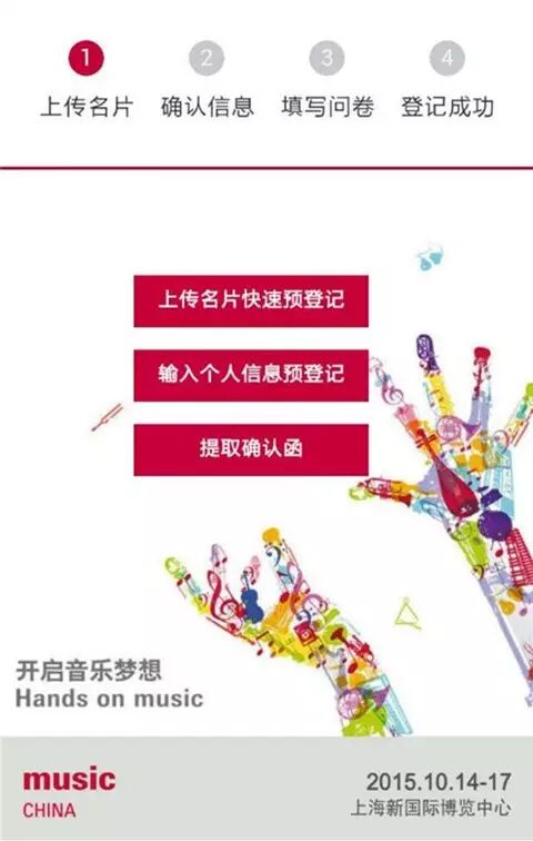 如果您没有将名片带在身边,或者是学生、非音乐行业从业者,点击“输入个人信息预登记”,之后按照如下提示操作: