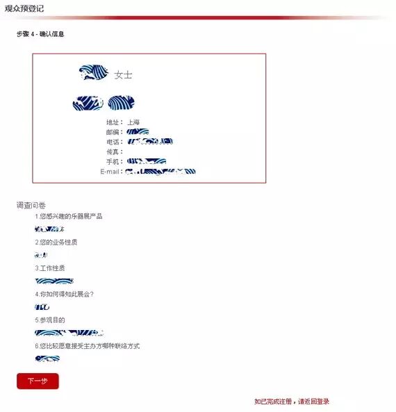 1填写个人信息您的个人基本信息,都会得到组委会的严密保护,绝不会泄漏或用作展会外其他商业用途,请放心填写。
