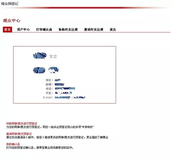 注册成功后,您之后在官网登入个人账号,可在“观众中心”“打印确认函”菜单下打印确认函,届时凭确认函换取证件;同时,在您填写好的注册邮箱内,也会发现kfbeastfair@vip.sina.com发来的确认函,未发现的话请到垃圾邮件文件夹寻找: