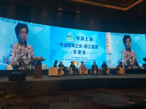 神州乐器网讯 10月16日,由中共德清县委、德清县人民政府主办的“中国钢琴之乡·浙江德清”答谢会在上海召开。德清县委书记张林华、副县长洪延艳,中国乐器协会副理事长王松美、乐器行业专家咨询委员会主任安志以及近50家洛舍钢琴企业和200多位客商出席了本次答谢会。