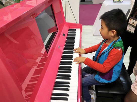 很多参观者中都是父母带着孩子想来感受一下音乐的氛围,让孩子多认认乐器,而面对那些高贵奢华的钢琴时,孩子们往往有种畏惧感,都不敢触碰,也不愿意弹奏,唯独在克洛斯威钢琴侠的展厅里,很多小孩子主动坐到钢琴前,抬手就开始弹奏,就算父母在身后询问着其他事宜,他们也能自觉练习,一点也没有不愿意的情绪,反而兴趣十足。