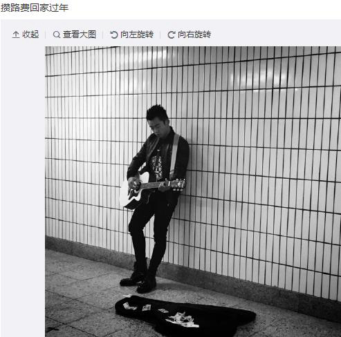 神州乐器网讯 12月7日,郑恺在微博晒出一张在地下通道弹吉他卖艺的黑白照,并打趣称:“攒路费回家过年。”照片中,郑恺穿着夹克窄腿裤和皮鞋,造型酷炫,正集中精力弹吉他。脚下的琴盒中零散得放着一些钞票。