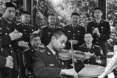 神州乐器网讯 湖南省邵阳市大祥区人武部注重组织官兵开展业余文化活动,愉悦身心,陶冶情操。图为他们组织小提琴兴趣小组成员进行才艺展示。
