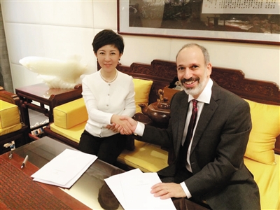 红黄蓝教育机构总裁史燕来与TMC亲子音乐启蒙教育创始人Rob签约。