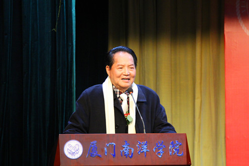 在捐赠仪式的结尾,庄炳生中气十足地与全场师生合唱了代表闽南精神的经典歌曲《爱拼才会赢》,老一辈华侨在海外打拼的种种传奇事迹,在歌声中印在了年轻大学生的心中。