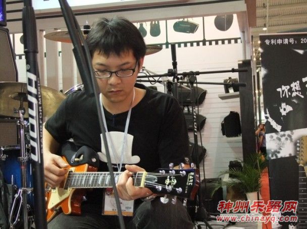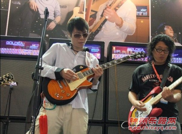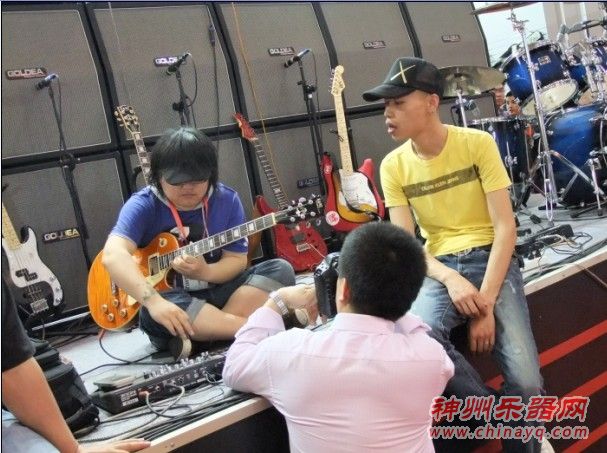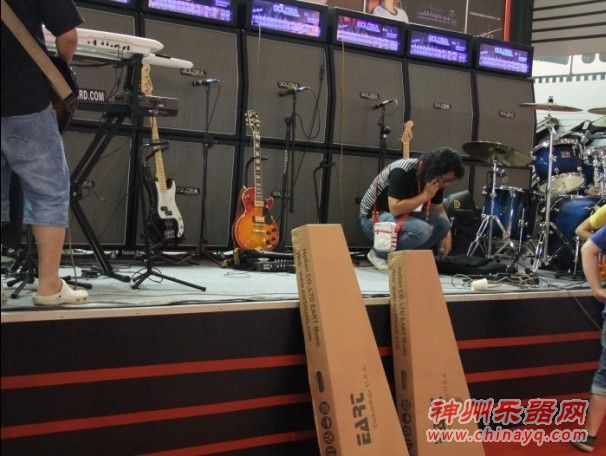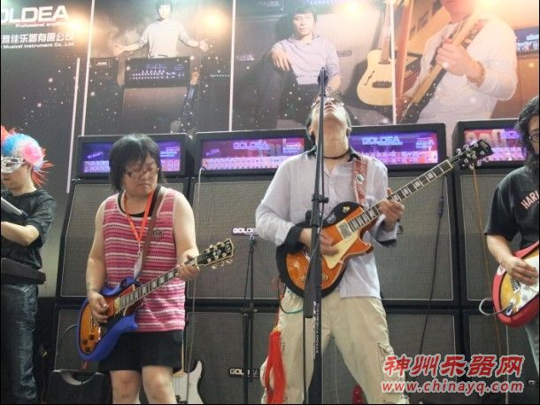 天空乐队用雅特乐器生产的自主品牌EART电吉他,他们之间的灵感配合,吉他音符仿佛漂浮在空中,摇迷们被激情流畅的音乐声所吸引,瞬间都沉浸在音乐的海洋中!让北京展会现场从瞬间安静到突然激情呐喊,让在场的人都感受到摇滚的魅力!天空乐队的歌曲虽然没有金属摇滚的霸气,没有民谣的小资,但他们的歌曲朴实、真情,听他们的歌曲让你回忆,回忆起曾经的美好,让你们学会懂得珍惜。