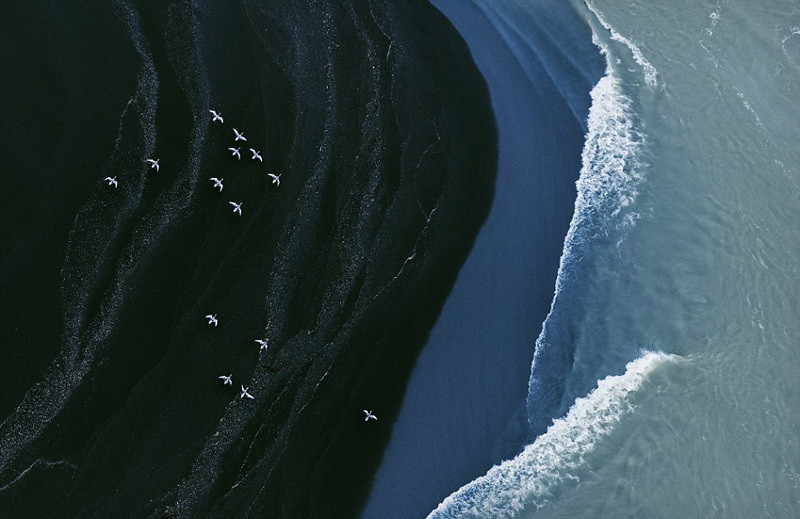 照片中,空灵、梦幻的海面上点缀着盈盈白鹭,美不胜收。2015年11月,扎克 塞克乘坐超轻型飞机,并将身子探至机舱外,成功捕捉了冰岛异常美丽的南部海岸风光。