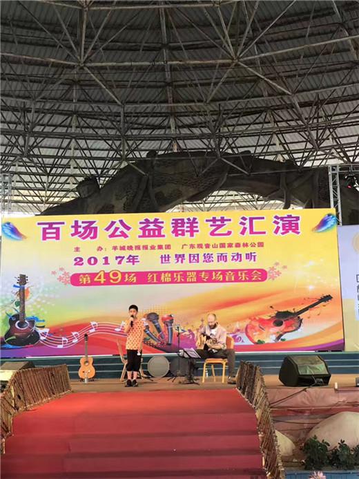 神州乐器网讯 8月6日,世界因您而动听—红棉乐器专场音乐会在广东观音山国家森林公园隆重举行。本次百场公益群艺汇演活动由羊城晚报报业集团和广东观音山国家森林公园联合主办,而红棉乐器作为第49场专场演出,特邀请美国格莱美音乐奖获得者TJ.Troy、意大利吉他比赛Lulgi Mozzani一等奖获得者Mak Grgic、2017萨格勒布音乐节青年组冠军Vanesa llicic国际大咖联同红棉乐团前往参与公益演出,为现场观众送上一场跨越国籍、跨越语言的世界音乐盛宴,乐韵声响彻观音山森林公园。