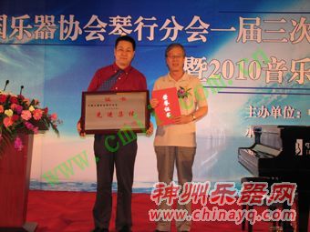 会上,中国乐器协会理事长安志还为琴行分会颁发了“2009年度中国乐器行业先进集体”奖牌和证书,琴行会长会长黄茂强代表中国乐器协会琴行分会领奖。琴行分会副会长周宝强宣布了《2010年琴行分会新聘顾问单位名单》,其新聘企业顾问单位有:施坦威钢琴(上海)有限公司、上海华新乐器有限公司、上海朱里士福里希乐器有限公司、河北乐海乐器有限责任公司、天津英昌乐器有限公司,共5家乐器制造企业。