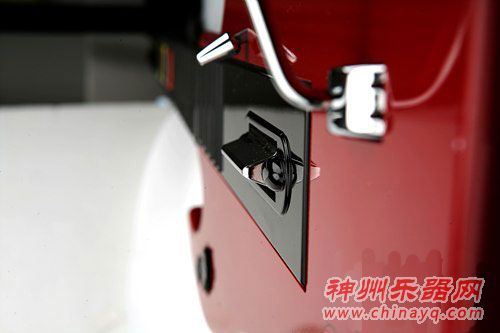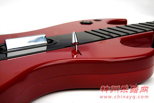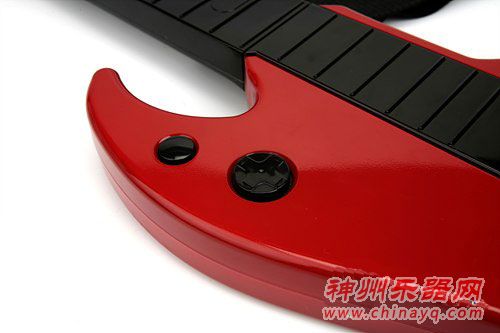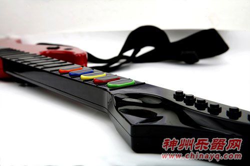 吉星JET-GCB015-C外形设计新颖,色彩丰富,乍看下去与真正的电吉他没什么区别,酒红色搭配纯黑色,十分酷,再加上多彩的按键,非常潮流。