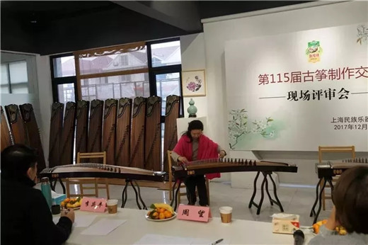 神州乐器网讯 2017年12月16日,上海民族乐器一厂第115届“敦煌杯”古筝制作交流现场评审会在麦克将文化创意园区的中国设计展厅举行,担任本次评审会的评委有:中央音乐学院周望教授、上海音乐学院王蔚教授、武汉音乐学院高雁教授、吉林艺术学院王晓红教授、安徽师范大学李庆丰教授、福建艺术职业学院陈爱娟副教授。