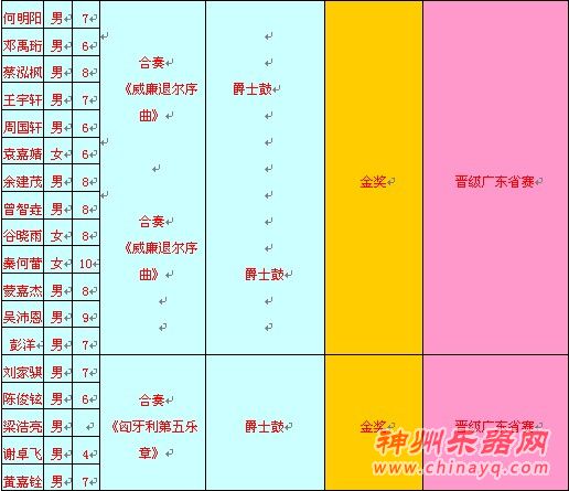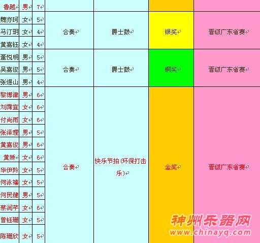(注:鼓舞飞扬琴行的学员用红色表示,如学生的名字、组别、性别有误的请致电更正,不便之处敬请原谅)