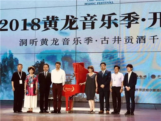 8月5日,在世界自然遗产张家界武源风景名胜区天子山景区御笔台之巅的德国博兰斯勒家族欧米勒“中国红”定制钢琴上,中国著名钢琴家元杰以一首《我爱你中国》钢琴协奏曲,与相隔15公里之外的合奏者、交响乐队、合唱团等,一同拉开以《希望的田野》为主题的黄龙音乐季帷幕!这也是世界第一场悬崖音乐会及百人世纪钢琴交响乐盛会!