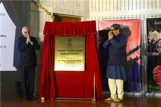 今年适逢印度先贤斯瓦米•维韦卡南达诞辰155周年,8月14日晚,斯瓦米•维韦卡南达文化中心揭幕仪式在印度驻华大使馆隆重举行。印度文化关系委员会主席及印度驻华大使共同为斯瓦米•维韦卡南达文化中心揭牌。应印度驻华大使馆邀请,中国乐器协会秘书长陈晋武参加揭牌仪式。