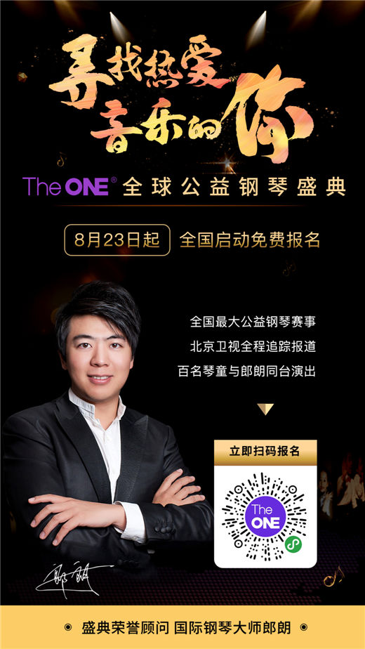 8月23日,国内领先的音乐教育机构——The ONE音乐教育集团今天携手国际钢琴大师郎朗、北京卫视,联合发起2018 The ONE全球公益钢琴盛典,即日起全国开启免费活动报名,中国乐器协会将作为支持单位助力盛典举办。经过层层选拔,最终100位优秀琴童将登上北京卫视,与郎朗同台演出。