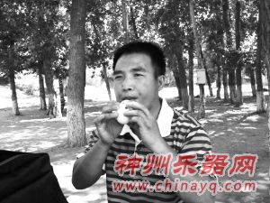 窦明今年36岁,中等身材、面色发红,小学毕业后在家务农。从小就喜欢音乐的他,无师自通,对二胡、唢呐等民族乐器是样样都会。现在他闻名乡里,成了“名人”。
