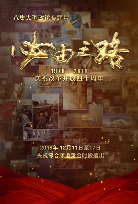 为隆重庆祝改革开放40周年,全方位展示改革开放波澜壮阔的伟大历程,由中央宣传部、中央改革办、中央党史和文献研究院、国家发展改革委、国家广播电视总局、新华社、中央广播电视总台、中央军委政治工作部联合拍摄的8集大型政论专题片《必由之路》,12月11日起在中央电视台综合频道20点档播出。