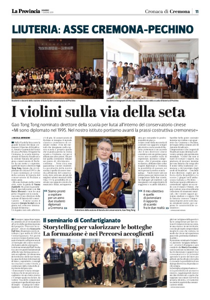 日前提琴故乡意大利克雷莫纳的著名媒体记者Nicola Arrigoni 对中央音乐学院新上任的提琴制作研究中心副主任高彤彤老师进行了电话采访,之后在当地第一大报 La Provincia 上发表了题为“丝绸之路上的小提琴”的署名文章,与此同时就在这则新闻登报发售的当天。以下为中央音乐学院官网报道。