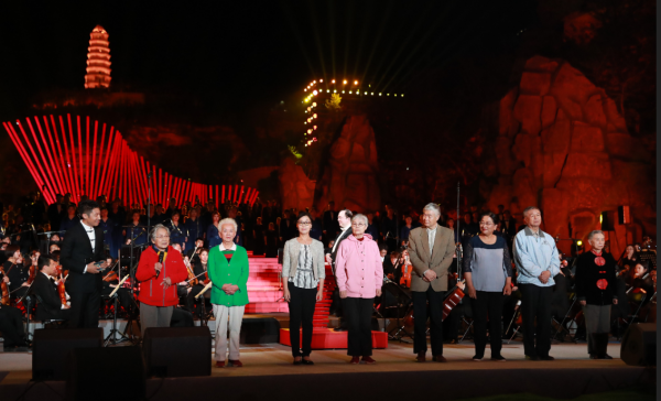 演出现场还邀请到了鲁艺老学员以及《黄河大合唱》创作者后代等8位嘉宾,多年来他们为《黄河大合唱》的传唱与延安精神的传承做着不懈努力,令人动容。