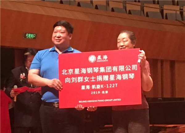 随着钢琴协奏曲《黄河》三乐章及歌颂周恩来总理《你是这样的人》等节目的相继出演,现场《星海永远为人民》赠琴仪式将音乐会推向高潮。两位特殊客人送来了星海工人1960年纯手工制作的85键钢琴,已故的刘孝叔和区慕洁夫妇正是这架钢琴的主人。老夫妇一生热爱钢琴艺术,临终留下遗愿,希望能将这架承载着他们文化情感的钢琴交归星海公司收藏,表达他们对星海钢琴的感谢。为感谢两位老人对星海的深情厚意,星海钢琴集团特将一架星海-凯旋K122T型号新型钢琴回赠给二老的家人,以续写星海品牌与爱乐人的历史情缘。