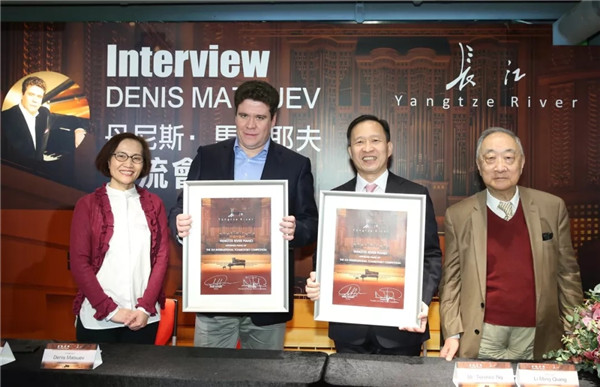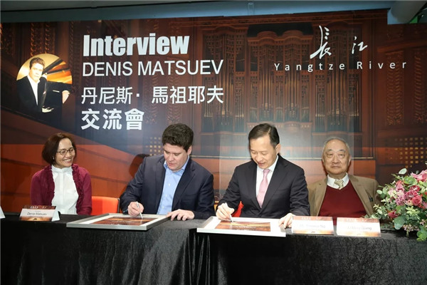 第16届柴科夫斯基国际音乐比赛钢琴组评委主席丹尼斯·马祖耶夫与柏斯音乐集团总裁吴雅玲、吴天延共同签约