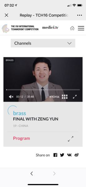 在刚刚结束的第十六届柴可夫斯基国际音乐比赛中,我校管弦系本科二年级曾韵同学凭借出色的演奏和完美的音乐表现获得评委们极高的认可,最终获得铜管组别第一名,再次刷新了中国管乐的历史!指导教师温泉教授。