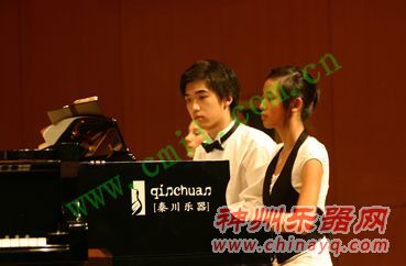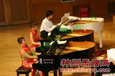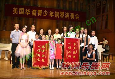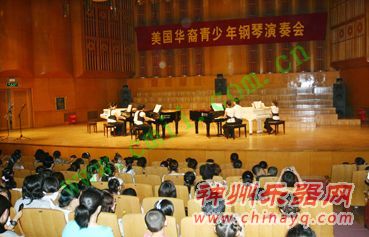 美国西北音乐学校中美文化合作交流团一行19人在旅美著名华人音乐人付元宗先生的带领下,于6月23日开始对省会石家庄进行文化交流访问。当晚在河北艺术中心音乐厅举办了专场钢琴音乐会,美国西北音乐学校的学生们分别以钢琴独奏,重奏,协奏,八手联弹,五琴联奏等丰富多彩的形式,为观众献上了从音乐大师肖邦的古典小夜曲,叙事曲,到拉赫曼尼诺夫的瞬间音乐作品,从柴可夫斯基的花之圆舞曲到当代作曲家不同风格的20- 30作品。为了使这次中国演出具有特色,这些在美国土生土长的华裔后裔们,还专门准备和排练了 〈东方红〉、〈没有共产党就没有新中国〉、〈草原上升起不落的太阳〉、〈大海啊故乡〉等12首中国曲目。尤其是由刘娅老师创作的最新形式的“黄河”五架钢琴十手联弹协奏曲,以最崭新的风格和气势呈现给观众。赢得了近千名观众的热烈掌声。秦川艺校的学员也同台演出了钢琴四手联弹,与美国西北音乐学校的学生进行了交流。