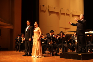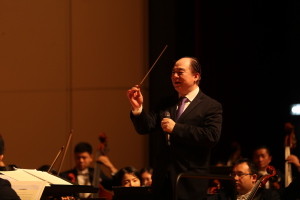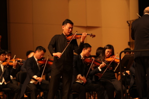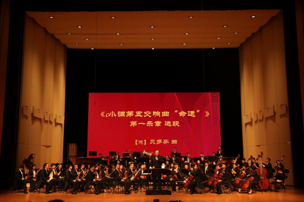 开班仪式结束后,随着激昂的《义勇军进行曲》响起,俞峰院长携中央音乐学院交响乐团及陈曦、宋元明、王传越等一众音乐家,以讲解、演出相结合的方式,给现场的吕梁学员带来了一堂生动的音乐欣赏课。在这堂课上,俞峰院长介绍了横跨交响乐、协奏曲、歌剧、舞剧等多种体裁的10首中外经典音乐作品,包括我国第一部民族歌剧《白毛女》、小提琴协奏曲《梁山伯与祝英台》、民族芭蕾舞剧《红色娘子军》、贝多芬《c小调第五交响曲“命运”》、歌剧《图兰朵》等,并结合党的文艺理论、大量中西音乐史料进行了细致的讲解。俞院长的讲解与音乐家们激情澎湃、震撼人心的音乐深深感染着在座的200多位学员。最后俞峰院长指挥全体演职人员与学员,在《我和我的祖国》的歌声中结束了这堂音乐欣赏课。