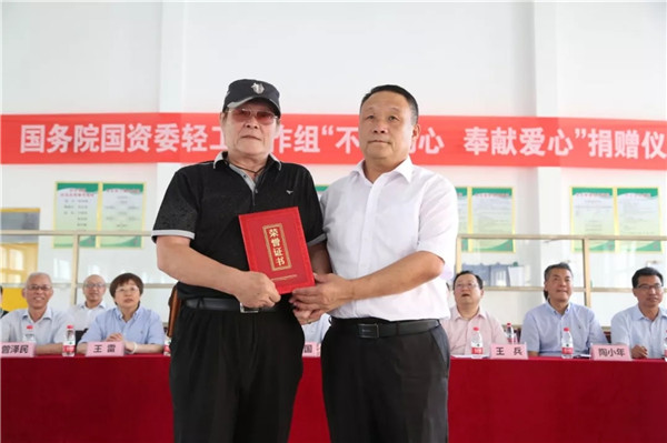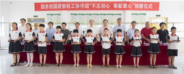 为落实脱贫攻坚战略,贯彻落实习近平总书记扶贫先扶志、扶贫必扶智重要精神的重要举措,7月9日,国务院国资委轻工协作组“不忘初心 奉献爱心”捐赠仪式在河北省邢台市平乡县节固乡中心小学隆重举行。中国轻工业联合会党委副书记、中国乐器协会理事长王世成,中国轻工业联合会纪委书记陶小年,国资委轻工机关服务中心主任、党委副书记王兵,国资委离退休干部局党委书记侯孝国,国资委离退休干部局党委副书记、纪委书记巴清宏,中国家用电器协会理事长姜风,江苏东方乐器有限公司董事长孔文忠,中国大众音乐协会口琴专业委员会会长白燕升,平乡县节固乡领导以及多位协作组专家,与节固乡中心小学学生共计200余人出席捐赠仪式。