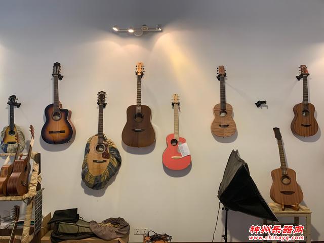 漳州雅歌乐器的部分吉他产品展示。(新华社记者吴剑锋摄)