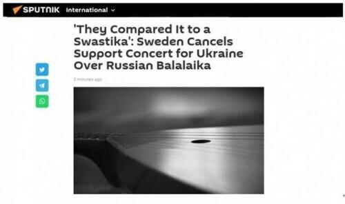 俄卫星社称,“他们把它比作纳粹符号”,瑞典取消了为支持乌克兰举办的音乐会,原因是俄罗斯巴拉莱卡